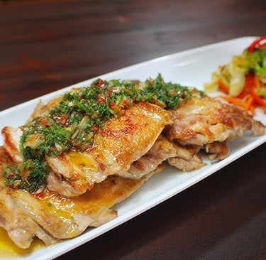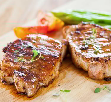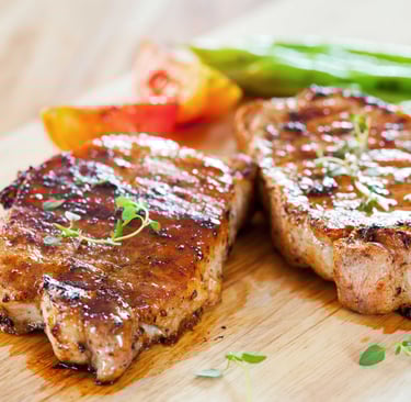 Corte jugoso de lomo de cerdo, preparado a la parrilla y servido por kilo.