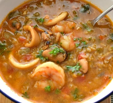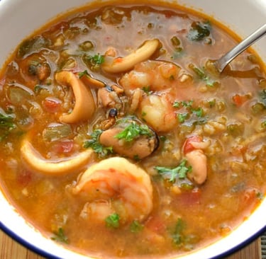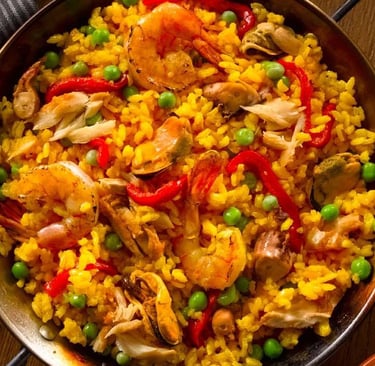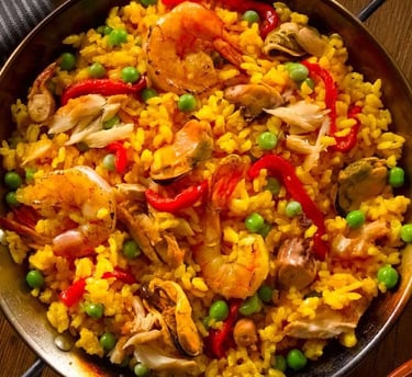 Arroz cocido con mariscos frescos y especias, un plato reconfortante. (2 Personas)