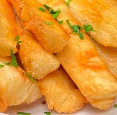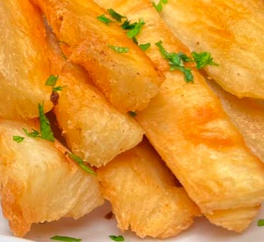 Servicio de yuca frita para acompañar, degustar y realzar tu mesa.